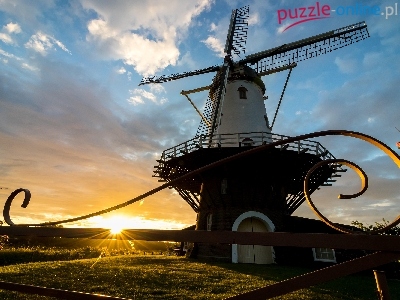 Wiatrak, Brama, Holandia, Veere, Wschód słońca