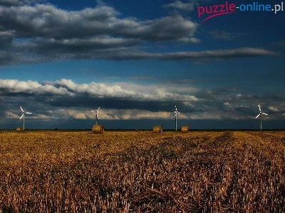 Puzzle Wiatraki, Słoma, Ściernisko, Chmury