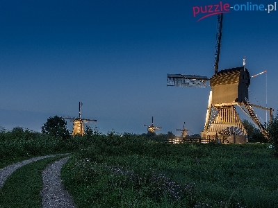Puzzle Wiatraki, Wiejska, Droga, Zmierzch