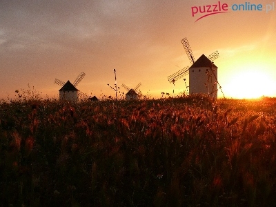 Puzzle Wiatraki, Promienie, Słońca, Zboże
