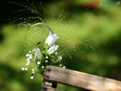 Puzzle Wiązanka, Białe kwiaty, Ławka