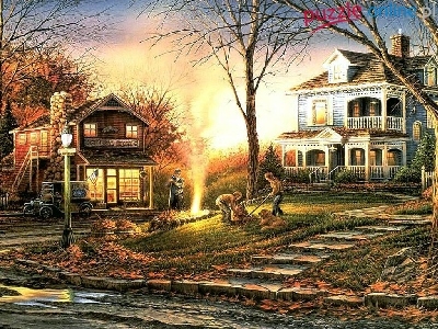 Puzzle Widoczek, Domki, Jesień, Malarstwo