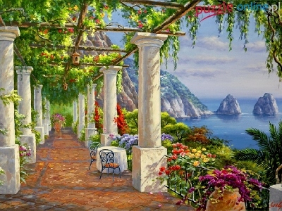 Widok, Góry, Taras, Kolumny, Morze