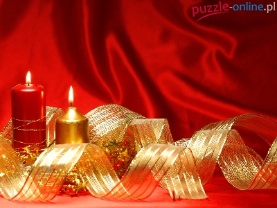 Świece, Wstążka, Dekoracja, Czerwone, Świąteczne