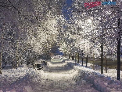 Wieczór, Zima, Park, Ławki