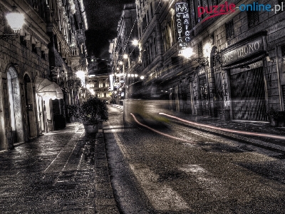 Włochy, Wieczór, Światła, Ulica, Europa, Genua, Domy