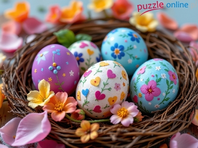 Kwiaty, Kolorowe, Gniazdo, Wielkanoc, Pisanki, Jajka, Płatki