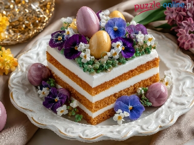 Kolorowe, Ciasto, Kwiaty, Wielkanoc, Talerz, Piernik, Jajka