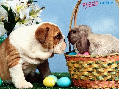 Puzzle Zajączek, Wielkanoc, Pies, Buldog