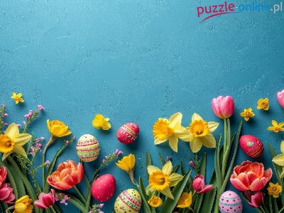 Niebieskie, Kwiat, Pisanki, Wielkanoc, Narcyz, Tulipan, Tło