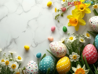 Puzzle Pisanki, Kwiat, Żonkile, Wielkanoc