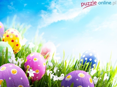 Puzzle Wielkanocne, Zielona, Trawa, Jajka