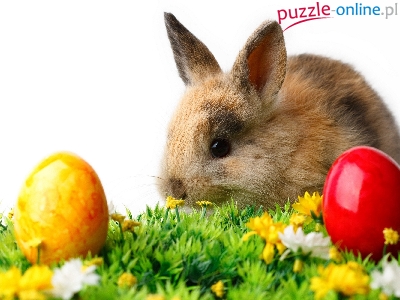 Wielkanocne, Królik, Zielona, Trawa, Jajka
