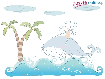 Puzzle Wieloryb, Fantasy, Dziewczynka, Jazda