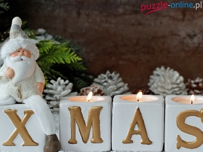 Boże Narodzenie, Szyszki, Gałązki, Figurka, Świeczki, Dekoracja, Mikołaj, Świerk