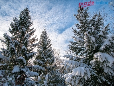 Puzzle Śnieg, Świerki, Zima