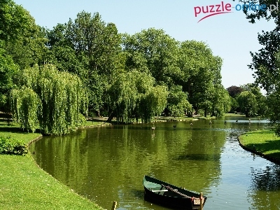 Puzzle Wierzby, Rzeka, Drzewa, Łódka