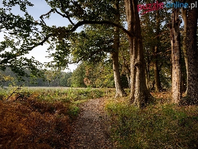 Prowincja Holandia Północna, Trawa, Drzewa, Wieś s-Graveland, Droga, Holandia, Jesień, Paprocie