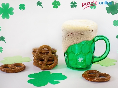 Piwo, Święto Patryka, Precelki, Kompozycja, Kufel, Pianka
