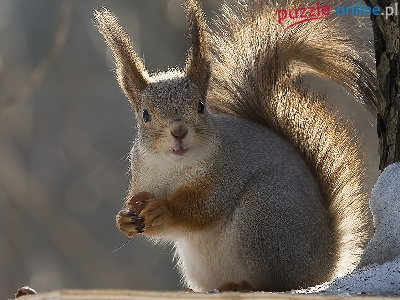 Puzzle Drzewo, Wiewiórka, Śnieg
