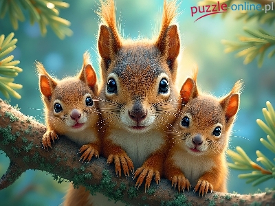Konar, Trzy, Grafika, Wiewiórki, Sosna, Drzewo