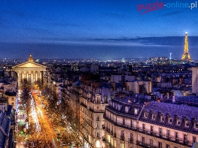 Wieża, Panorama, Paryż, Nocą, Eiffla
