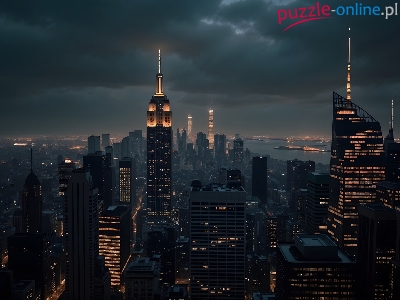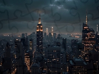 Wieżowce, Stany Zjednoczone, Drapacze chmur, AI, Manhattan, Nowy Jork, Noc