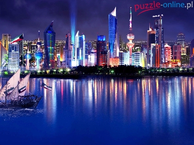 Wieżowce, Żaglowiec, Panorama, Miasta, Kolory