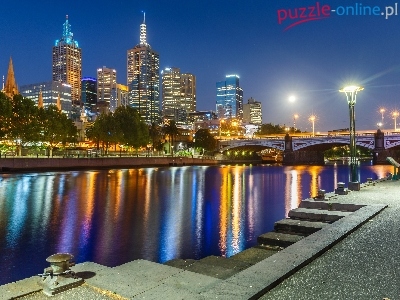 Wieżowce, Światła, Austria, Rzeka, Most