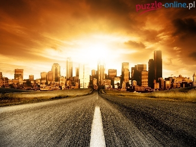 Puzzle Wieżowce, Zachód, Słońca, Droga