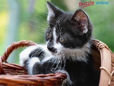 Puzzle Wiklinowy, Czarno Biały, Kotek, Koszyk