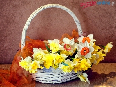 Kwiaty, Wiklinowy, Apaszka, Żonkile, Wiosenne, Narcyze, Koszyk