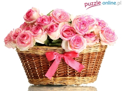 Puzzle Wiklinowy, Różowe, Róże, Koszyk