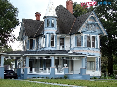Puzzle Wiktoriański, Niebiesko, Biały, Dom