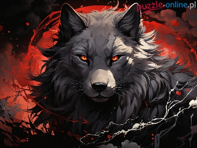 Puzzle Czarny, Grafika, Głowa, Wilk