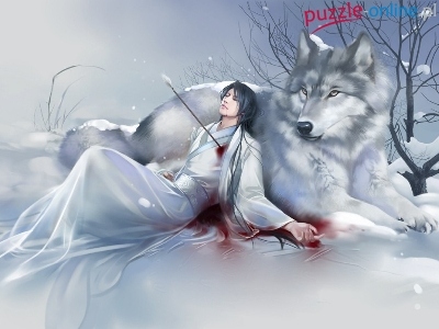 Puzzle Wilk, Ranny, Człowiek, Śnieg