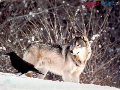 Puzzle śnieg, Wilk, kruk