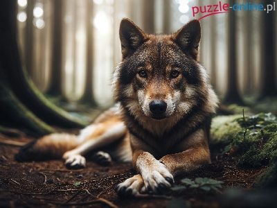 Puzzle Las, Wilk, Spojrzenie, Grafika AI