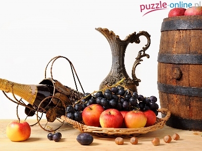 Wina, Jabłka, Beczka, Butelka, Winogrona