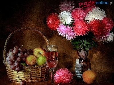 Wina, Owoce, Obrazu, Astry, Kieliszek, Reprodukcja
