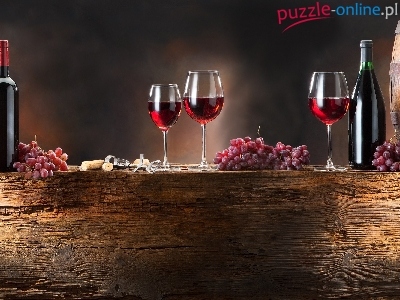 Puzzle Wina, Butelki, Lampki, Winogrona