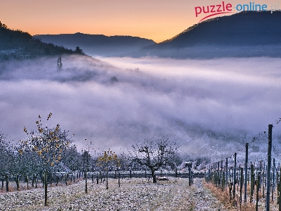 Góry, Pole, Mgła, Winnice, Dolina, Szron