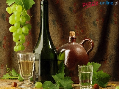 Puzzle Wino, Winogrona, Butelki, Kieliszek