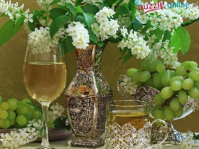 Wino, Srebrna, Winogrona, Jaśmin, Zastawa, Herbata
