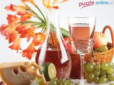 Kwiaty, Winogrona, Wino, Kosz, Pomarańczowe, Wiklinowy, Ser