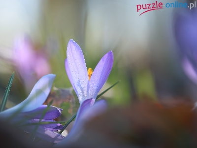 Puzzle Kwiaty, Fioletowe, Krokusy, Wiosenne