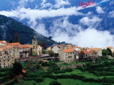 Puzzle Wioska, Góry, Chmury, Budynki