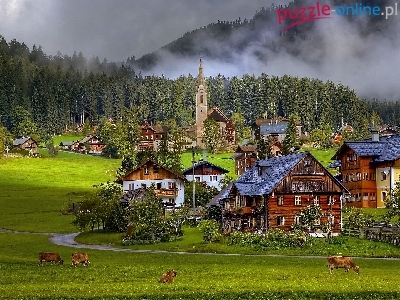 Wioska, Krowy, Austria , Gosau, Domy