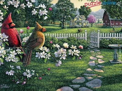 Puzzle Wiosna, Ptaki, Kardynały, Malarstwo