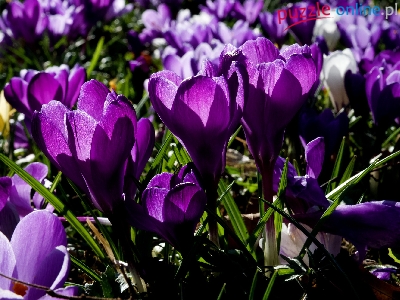 Puzzle Krokusy, Kwiaty, Rozświetlone, Wiosna